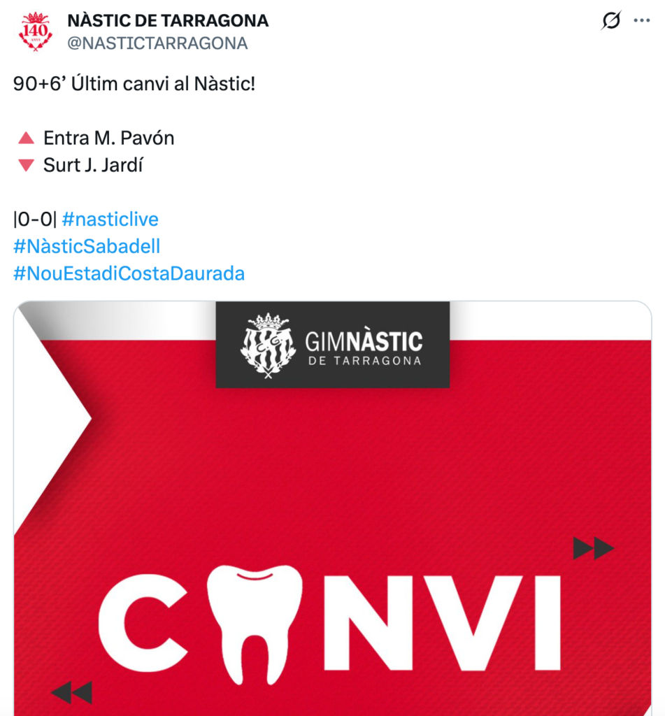 El joven futbolista Manel Pavón, representado por Sportgenia Consulting, ha vivido un nuevo y significativo paso en su carrera deportiva al seguir sumando minutos con el primer equipo del Gimnàstic de Tarragona en 1ª RFEF. Este sábado, el equipo se enfrentó al CE Sabadell en el Nou Estadi, donde el encuentro terminó con un empate 0-0.